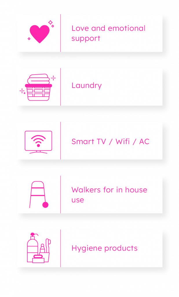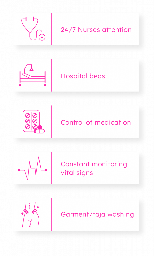 Hospital and comfy beds / 24/7 caretakers